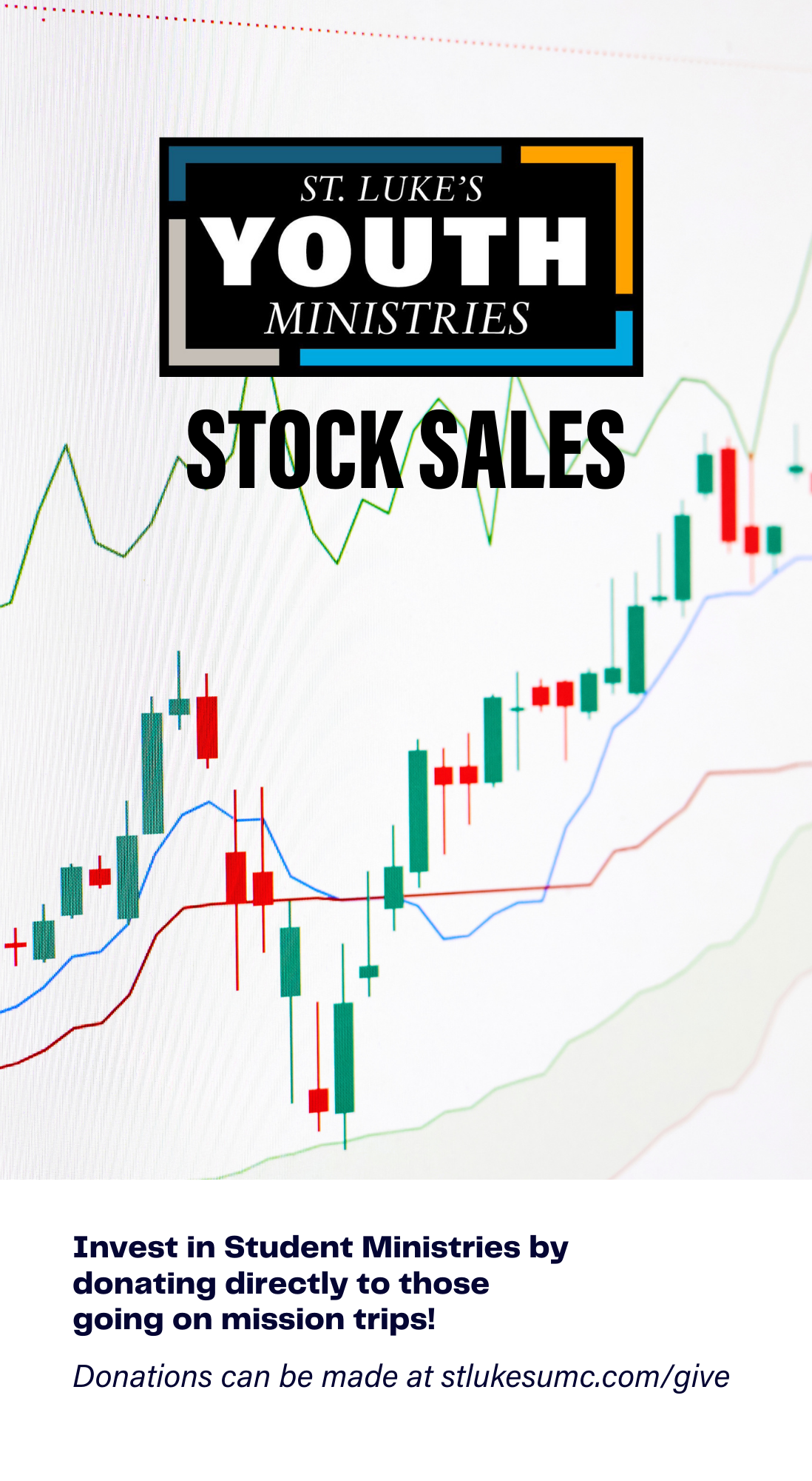 Our stock sales fundraiser directly benefits students participating in our summer events: MS Mayhem, MS Camp at Camp Adventure, HS Camp at Epworth Forest, Domestic Mission Trip, and Upperclassmen Leadership Trip. Students will be selling "shares" of our youth ministry stock at $10 a piece. Those who give at least $50 will receive handwritten thank-you postcards from one of our students while on summer trips.
